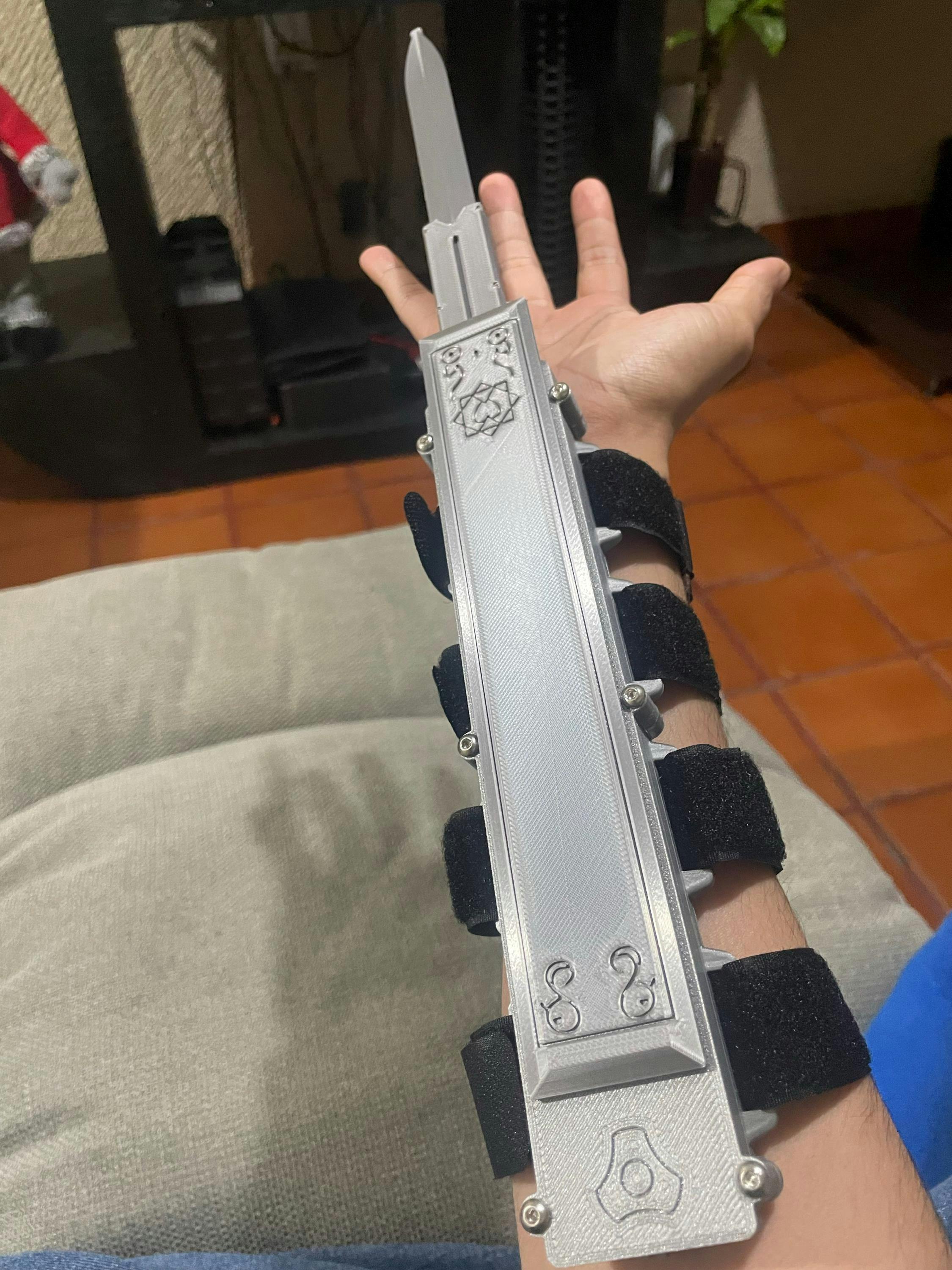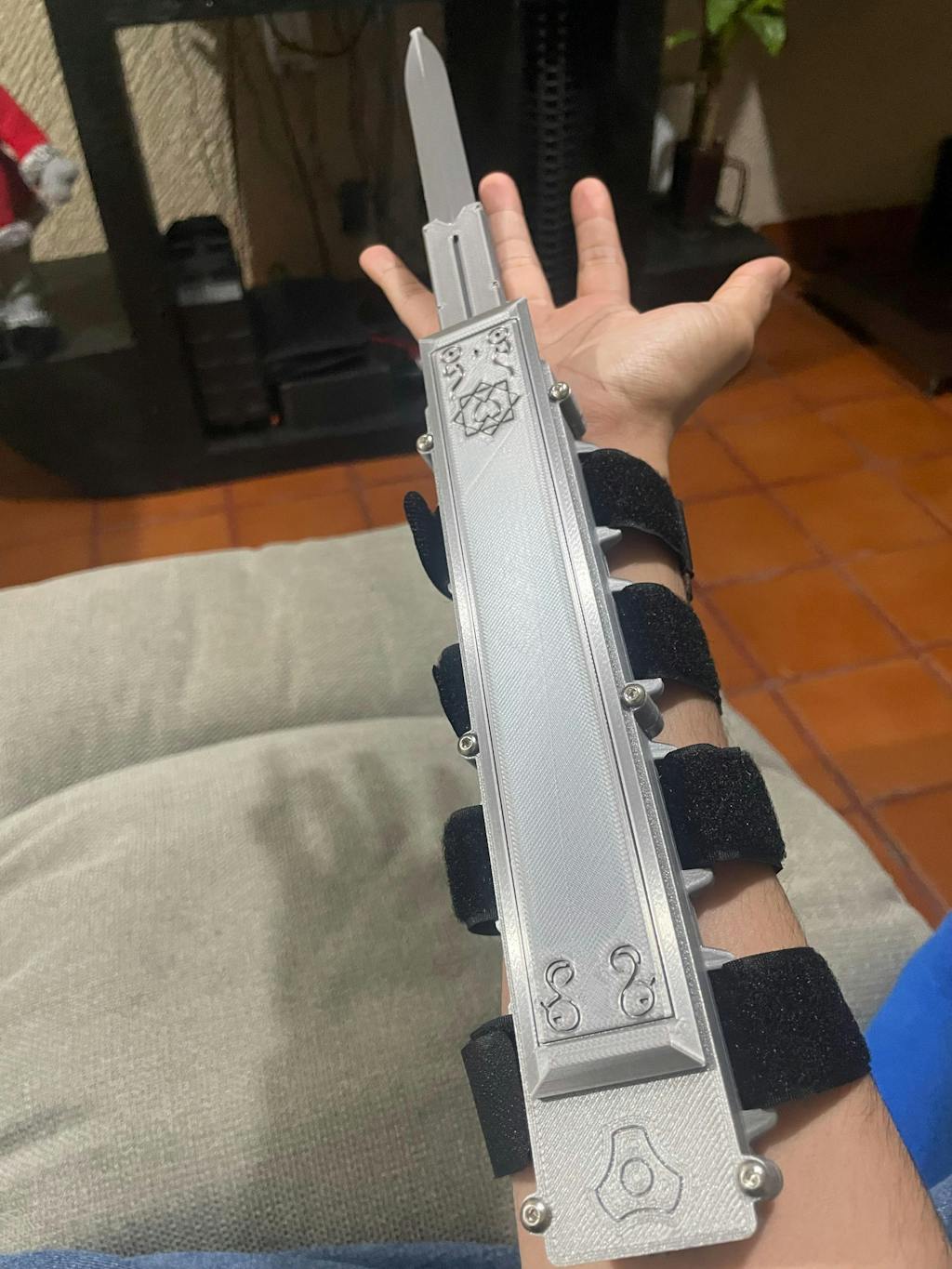 Crafted from a combination of 3D-printed detailing and injection-moulded components, this hidden blade balances durability with accuracy. The integrated safety switch prevents accidental deployment, making it secure for conventions, display, and cosplay events.