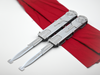 Each blade ships with a removable safety tip installed for transport and safe handling. The safety tip can be removed for a more accurate pointed appearance, however this should only be done carefully and at your own discretion.